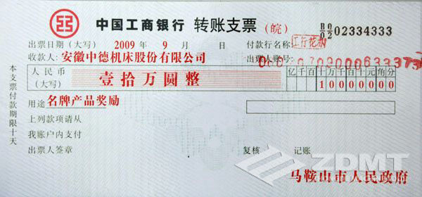 隨后,會議對馬鞍山市2008年參與國家標準制定修訂及AAA級標準化良好行為企業、獲得2008年度省名牌企業以及2009年度市名牌產品生產企業進行了表彰。周春雨市長向安徽華菱汽車股份有限公司現場頒發了我市首屆市長質量獎獎牌。我公司產液壓板料折彎機產品獲2008年“安徽名牌產品”,獲得市政府10萬元現金獎勵。